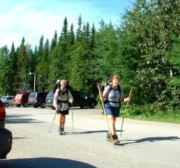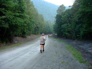 Jerry got overheated the second day and the girls carried his pack for him. Judy took half and walked ahead to meet me. She then walked back in about 1-2 miles to carry the other half so that Darcy wouldn't have to carry her pack and Jerry's half full pack. I walked out with Jerry while they went ahead. Because it was late and they were hungry they ran the last mile down the road.