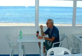 | When the girls arrived we had lunch in the canteen on the beach. Jerry had poutine. It is served everywhere up here. It's french fries covered with cheese and gravy. Some restaurants have several varieties, Italian, steak, Mexican and others. |