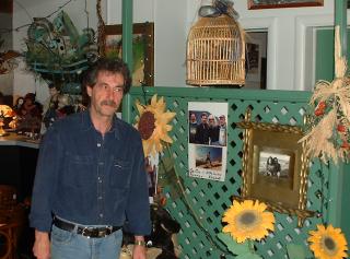 | I then went and visited with Raymond who owns the Motel Sainte Pierre. This is him standing next to a picture of Nimblewill, Dick Anderson and himself. We discussed trail conditions and I told him about the signs being torn down. |