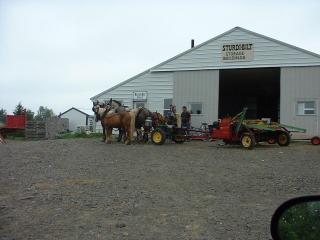 When we left off last time we were still in the USA. The rest of the trail in Maine is mostly road walks. We did pass through a Mennonite farming area. This picture is of a horse drawn hay baler at a repair shop. I stopped a the general store and when I entered I thought they had a power outage until I noticed there were no lighting fixtures. They even had a crank-operated cash register. They had bulk foods, hardware and boots for sale.