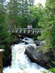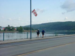 | The next day they hiked into Canada. I moved the RV to a campground in Perth-Andover, New Brunswick and waited for them at the bridge. Since the trail is an abandoned railroad bed, I decided to bike to meet them. I rode out 5 miles and couldn't find them. I rode back to the car and waited 2 more hours and they still weren't there.