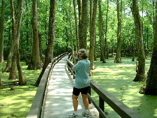 There a several cypress swamps along the Trace that have boardwalks. At this one we met a young man who was also biking the Trace. He, however, started in New Orleans and was doing 90 miles per day. He works at a National Park out west and has biked all over the US.