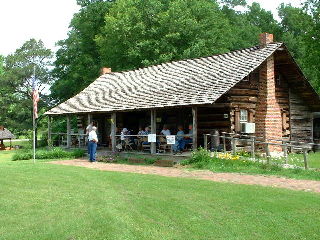 Along the Trace there are points of interest every few miles. Some a just signs explaining what used to be there and some things that are still there. This is Mount Locust Inn, built around 1780. Mount Locust is the only remaining example of a frontier "stand" or inn on the Natchez Trace. Stand were located at 10 or 20 mile intervals, or about one days' walk apart. For approximately 25 cents weary travelers could enjoy a supper of "mush and milk" and the priviledge of sleeping on the floor in a room jamed to the rafters with saddles, baggage, and other wayfarers.