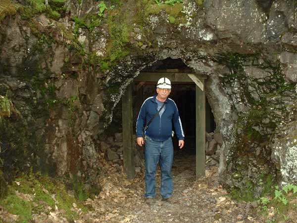 At the Adventure Mining Company I did the underground tour. They drove us thru the ruins of the facility in a neat ATV. It's a Swiss army troop carrier. Judy didn't go on the underground portion so it was just the guide and me. Judy went back to the gift shop to wait. The owner had a new puppy. Judy petted it and it peed on her foot.